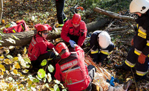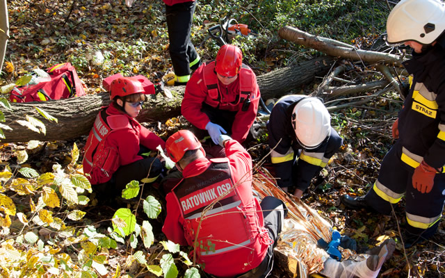 Po chwili okazało się, że robotnik wycinający drzewa w lesie został przygnieciony przez spadające drzewo. Ratownicy mieli problem z wydobyciem go spod powalonego pnia. Jego stan był na tyle ciężki, że został wezwany śmigłowiec Lotniczego Pogotowia Ratunkowego, który przetransportował poszkodowanego do szpitala.